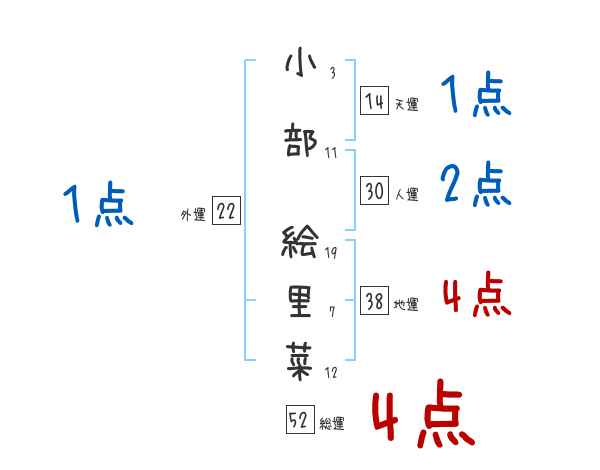 小部絵里菜さんの画数の鑑定結果