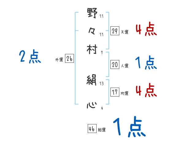 野々村絹心さんの画数の鑑定結果