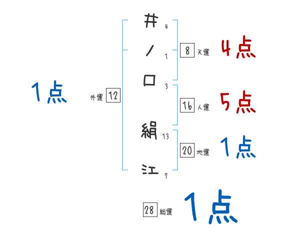 総運![]() | 井ノ口絹江さんの総運は28画の1つ星!家庭環境に注意。スポーツで活躍できる能力があるかも。 あなたの人生を表す1番重要な運勢です。生涯を通じて影響する総合運となり、主に50歳以降の晩年期に影響を及ぼします。 |