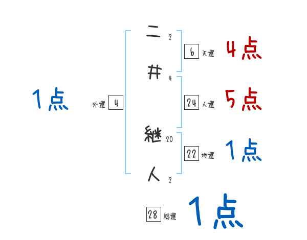 二井継人さんの画数の鑑定結果