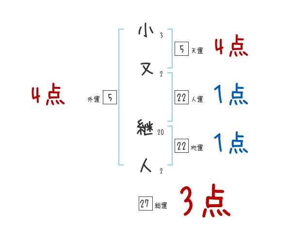 小又継人さんの画数の鑑定結果