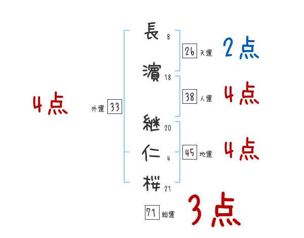 長濵継仁桜さんの画数の鑑定結果