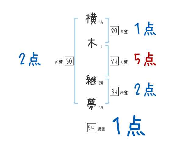 家系が持つ宿命的な運勢を表します。祖先から受け継いだ苗字ですので自分の力が及びません。家柄を象徴します。