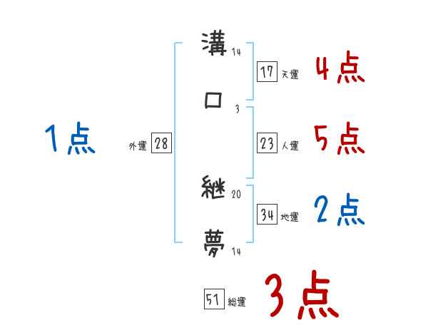 溝口継夢さんの画数の鑑定結果