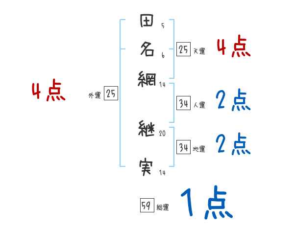 田名網継実さんの画数の鑑定結果