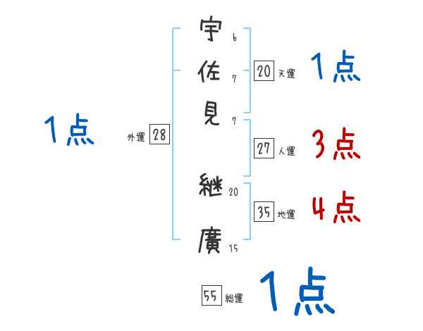 宇佐見継廣さんの画数の鑑定結果