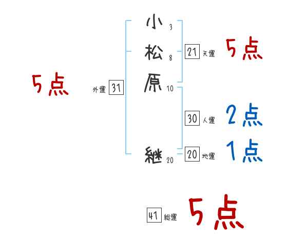 小松原継さんの画数の鑑定結果