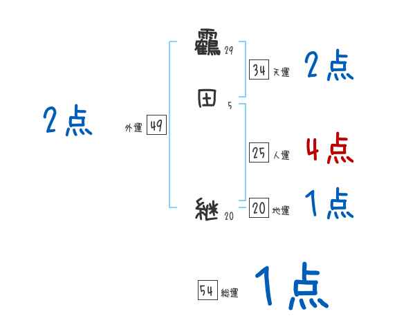 靏田継さんの画数の鑑定結果