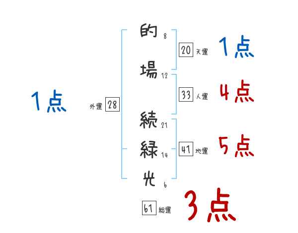 地運![]() | 的場続緑光さんの地運は41画の5つ星!大志を抱き、目標に向かって実力を発揮し達成する。温和な性格。 個性を表す基礎的な運勢です。性格形成や対人関係、行動力など家庭環境に影響されます。主に誕生してから20歳くらいまでの若年期の運勢を表します。 |