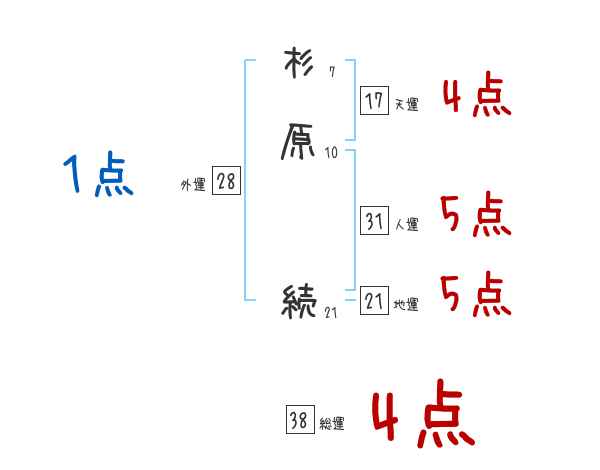 杉原続さんの画数の鑑定結果