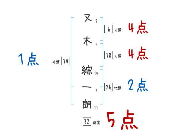総運![]() | 又木綜一朗さんの総運は32画の5つ星!柔軟性があり成功する。チャンスが多く金運が良い。 あなたの人生を表す1番重要な運勢です。生涯を通じて影響する総合運となり、主に50歳以降の晩年期に影響を及ぼします。 |