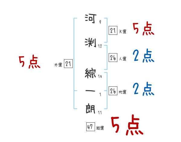 河渕綜一朗さんの画数の鑑定結果