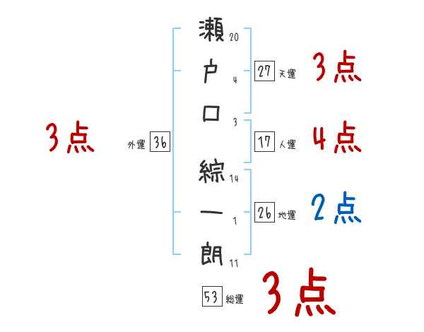 瀬戸口綜一朗さんの総運は53画の3つ星
