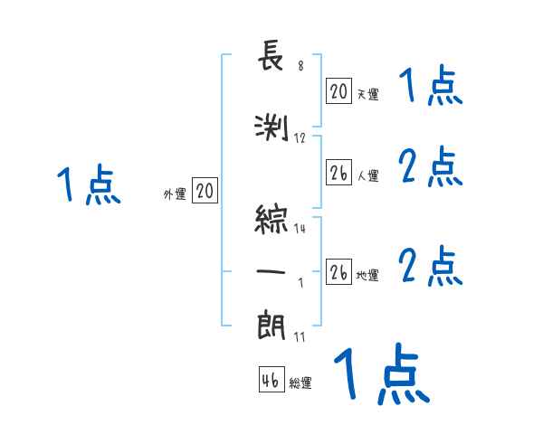 総運![]() | 長渕綜一朗さんの総運は46画の1つ星!迷走することが多く苦労するかも。目先のことにとらわれないように。 あなたの人生を表す1番重要な運勢です。生涯を通じて影響する総合運となり、主に50歳以降の晩年期に影響を及ぼします。 |