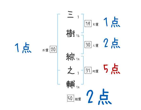 人運![]() | 三樹綜之輔さんの人運は30画の2つ星!浮き沈みの激しさに注意しましょう。 性格や才能などを表す2番目に重要な運勢です。人間関係や協調性、社会的な成功に影響します。主に20歳から50歳ぐらいまでの中年期の運勢を表します。 |