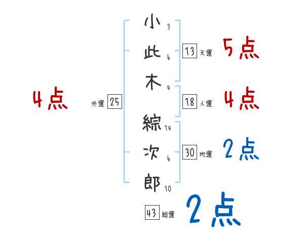 小此木綜次郎さんの画数の鑑定結果