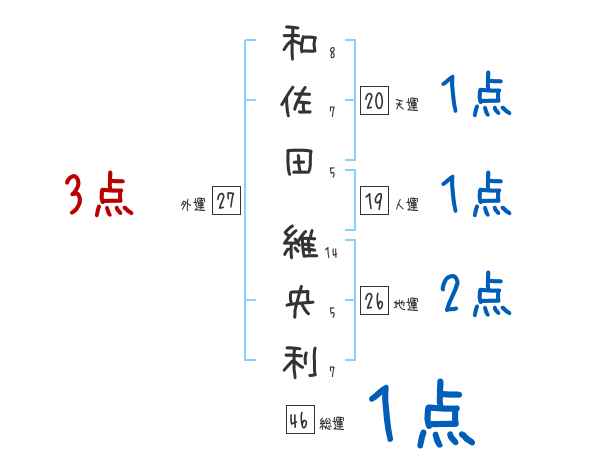和佐田維央利さんの画数の鑑定結果