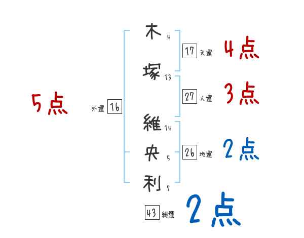 木塚維央利さんの画数の鑑定結果