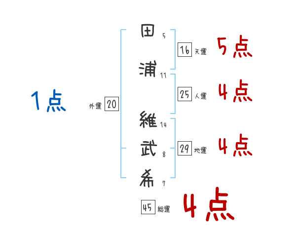 田浦維武希さんの画数の鑑定結果