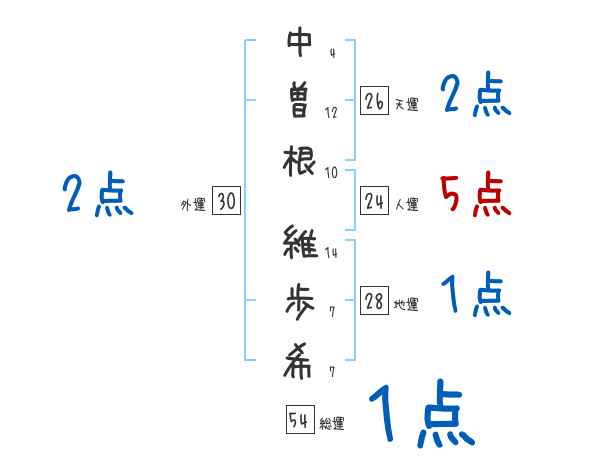 中曽根維歩希さんの画数の鑑定結果
