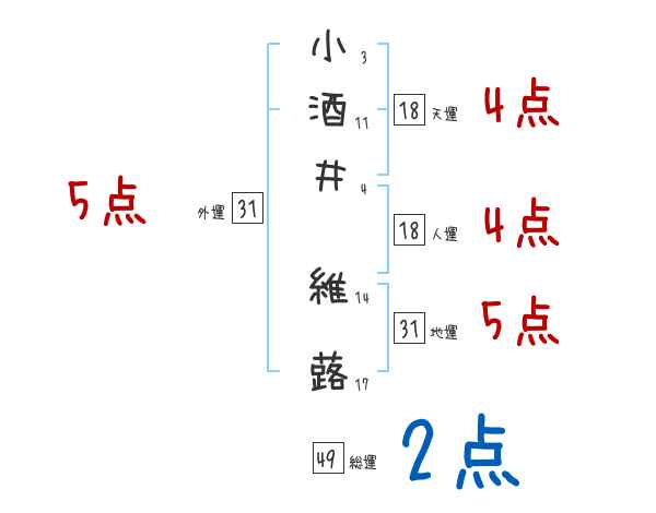総運![]() | 小酒井維蕗さんの総運は49画の2つ星!不安定な性格で明暗がある人生。周りの人には支援されやすい。 あなたの人生を表す1番重要な運勢です。生涯を通じて影響する総合運となり、主に50歳以降の晩年期に影響を及ぼします。 |