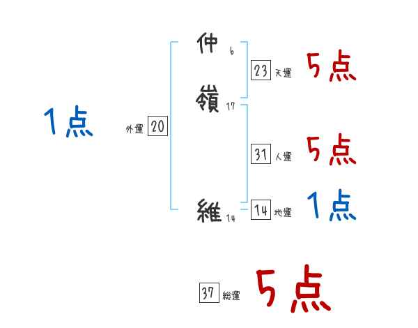 天運![]() | 仲嶺維さんの天運は23画の5つ星!想像力に優れ活力がある。一代で成功し名誉を手に入れる。 家系が持つ宿命的な運勢を表します。祖先から受け継いだ苗字ですので自分の力が及びません。家柄を象徴します。 |