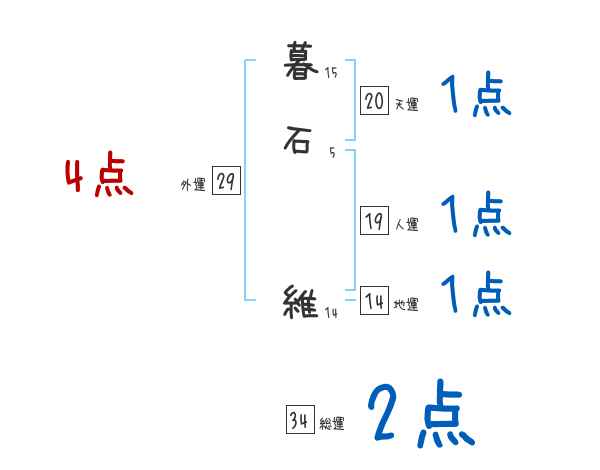 暮石維さんの画数の鑑定結果