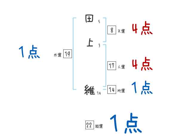田上維さんの画数の鑑定結果