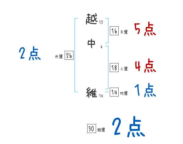外運![]() | 越中維さんの外運は26画の2つ星!波瀾万丈かも。信頼できる人を大事にしましょう。 生活面を象徴する運勢です。外部から受ける影響力を表し、結婚運、家庭運や職場、環境への順応性を表します。 |