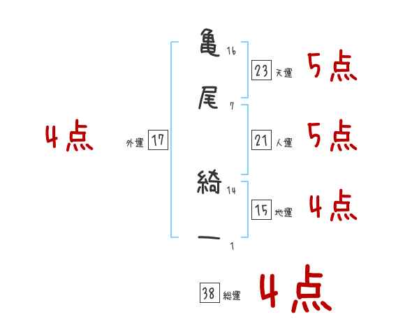亀尾綺一さんの画数の鑑定結果