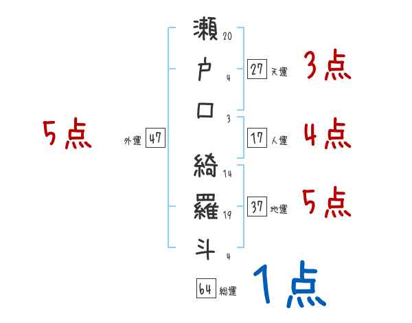 瀬戸口綺羅斗さんの画数の鑑定結果