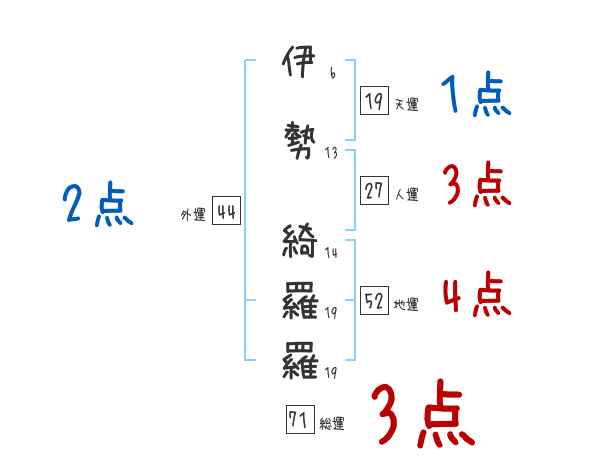 天運![]() | 伊勢綺羅羅さんの天運は19画の1つ星!優れた才能を持ちますが、協調性が足りないことも。周りの人と協力する事を意識しましょう。 家系が持つ宿命的な運勢を表します。祖先から受け継いだ苗字ですので自分の力が及びません。家柄を象徴します。 |
