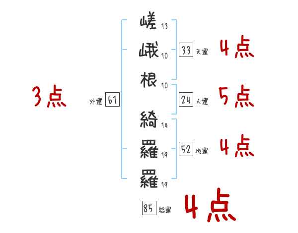 嵯峨根綺羅羅さんの画数の鑑定結果