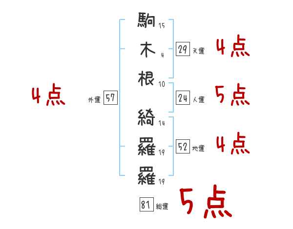 駒木根綺羅羅さんの画数の鑑定結果