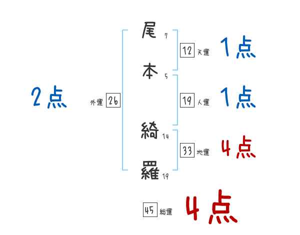 尾本綺羅さんの画数の鑑定結果