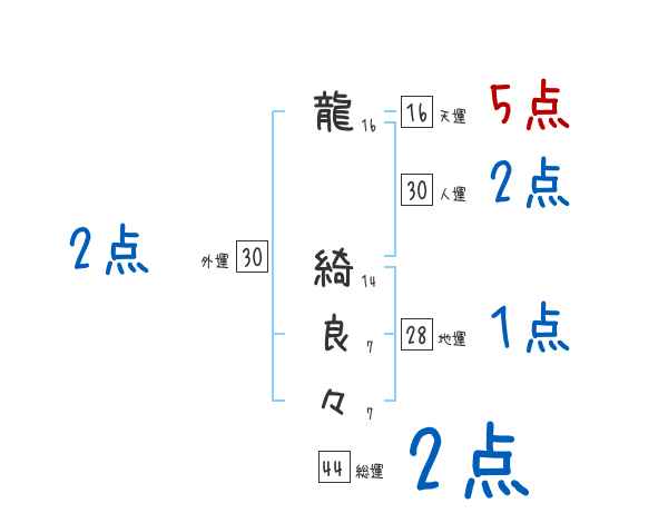 龍綺良々さんの画数の鑑定結果