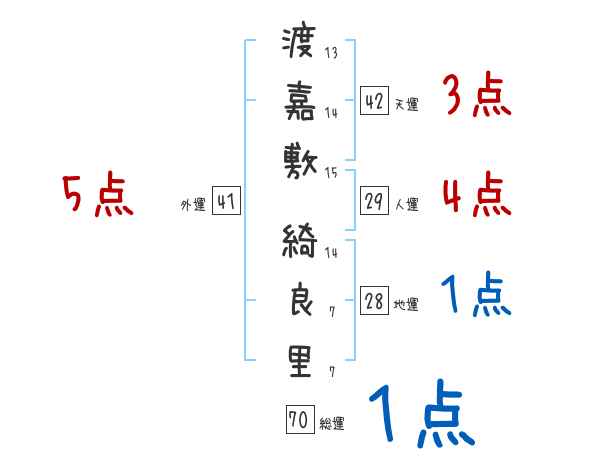渡嘉敷綺良里さんの画数の鑑定結果