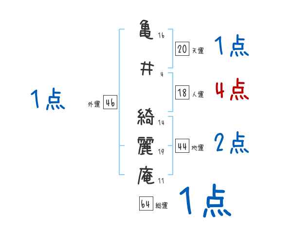亀井綺麗庵さんの画数の鑑定結果