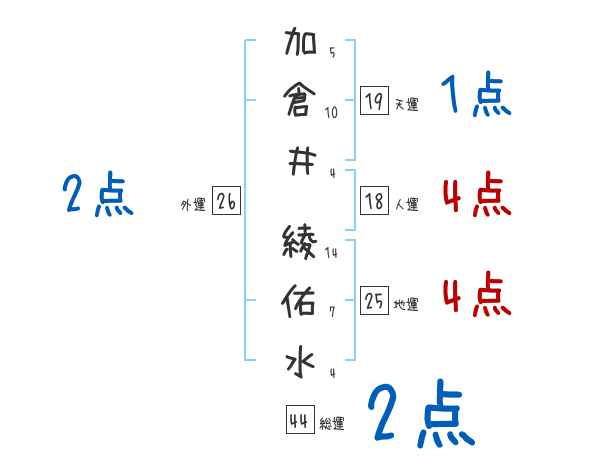 加倉井綾佑水さんの画数の鑑定結果