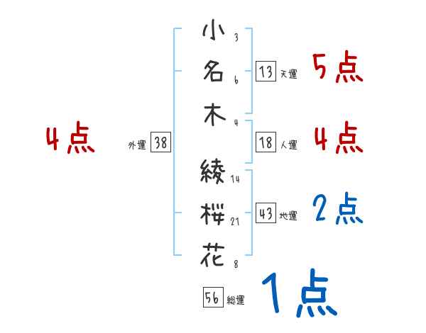 小名木綾桜花さんの画数の鑑定結果