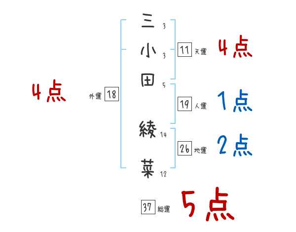三小田綾菜さんの画数の鑑定結果