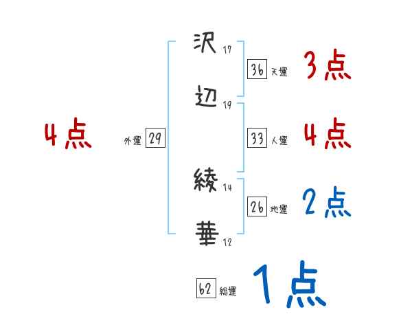 沢辺綾華さんの画数の鑑定結果