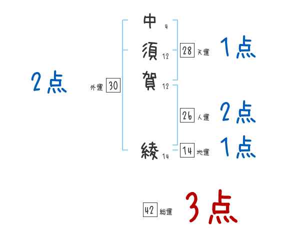 天運![]() | 中須賀綾さんの天運は28画の1つ星!家庭環境に注意。スポーツで活躍できる能力があるかも。 家系が持つ宿命的な運勢を表します。祖先から受け継いだ苗字ですので自分の力が及びません。家柄を象徴します。 |