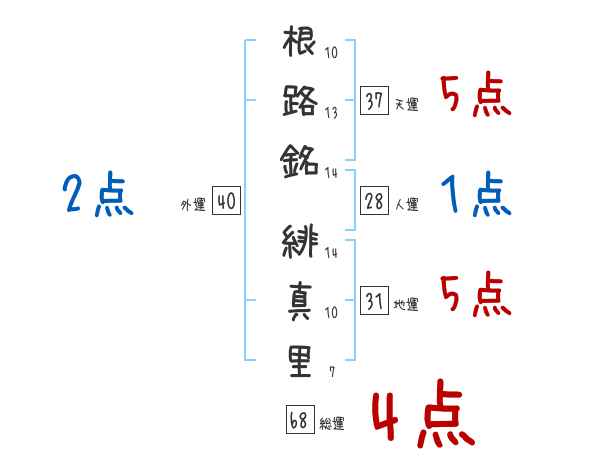 根路銘緋真里さんの画数の鑑定結果