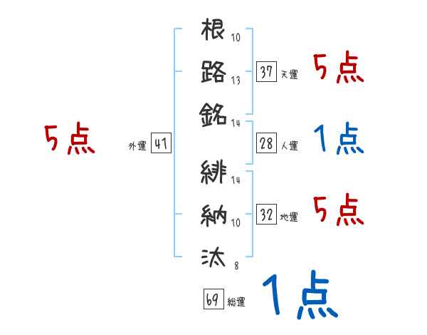 地運![]() | 根路銘緋納汰さんの地運は32画の5つ星!柔軟性があり成功する。チャンスが多く金運が良い。 個性を表す基礎的な運勢です。性格形成や対人関係、行動力など家庭環境に影響されます。主に誕生してから20歳くらいまでの若年期の運勢を表します。 |