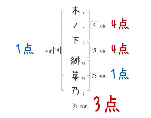 木ノ下緋菜乃さんの画数の鑑定結果