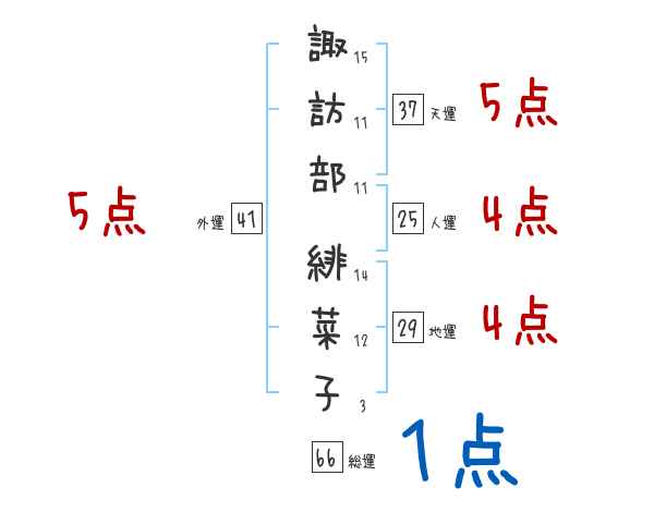 外運![]() | 諏訪部緋菜子さんの外運は41画の5つ星!大志を抱き、目標に向かって実力を発揮し達成する。温和な性格。 生活面を象徴する運勢です。外部から受ける影響力を表し、結婚運、家庭運や職場、環境への順応性を表します。 |