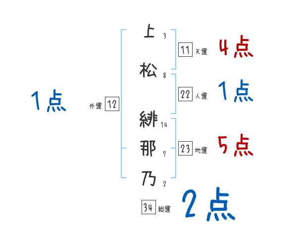 総運![]() | 上松緋那乃さんの総運は34画の2つ星!独創性に優れるが、自尊心が強く災難に注意しましょう。 あなたの人生を表す1番重要な運勢です。生涯を通じて影響する総合運となり、主に50歳以降の晩年期に影響を及ぼします。 |
