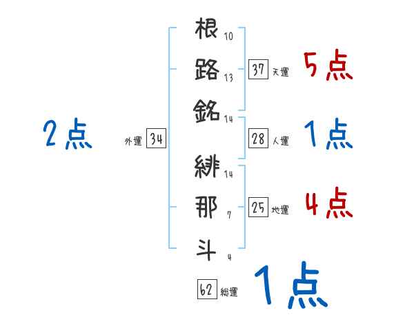 天運![]() | 根路銘緋那斗さんの天運は37画の5つ星!努力家で順応性に優れる。現実的な考え方ができ忠実に物事をこなす。 家系が持つ宿命的な運勢を表します。祖先から受け継いだ苗字ですので自分の力が及びません。家柄を象徴します。 |