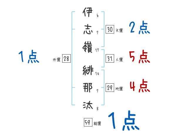 伊志嶺緋那汰さんの画数の鑑定結果